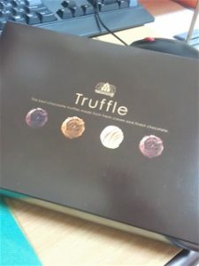 おトリュフ 投稿日: 2018年10月29日 渡部カテゴリー: ブログ こんにちは。 本日の 甘いモノタイムは 平塚へ柿の木剪定と収穫の時に頂いた ちよこれいとです ドリフじゃなく トリュフですって・・ お高級感のある お名前ですこと(^^)