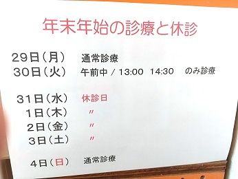 年末年始の診療と休診についてです。